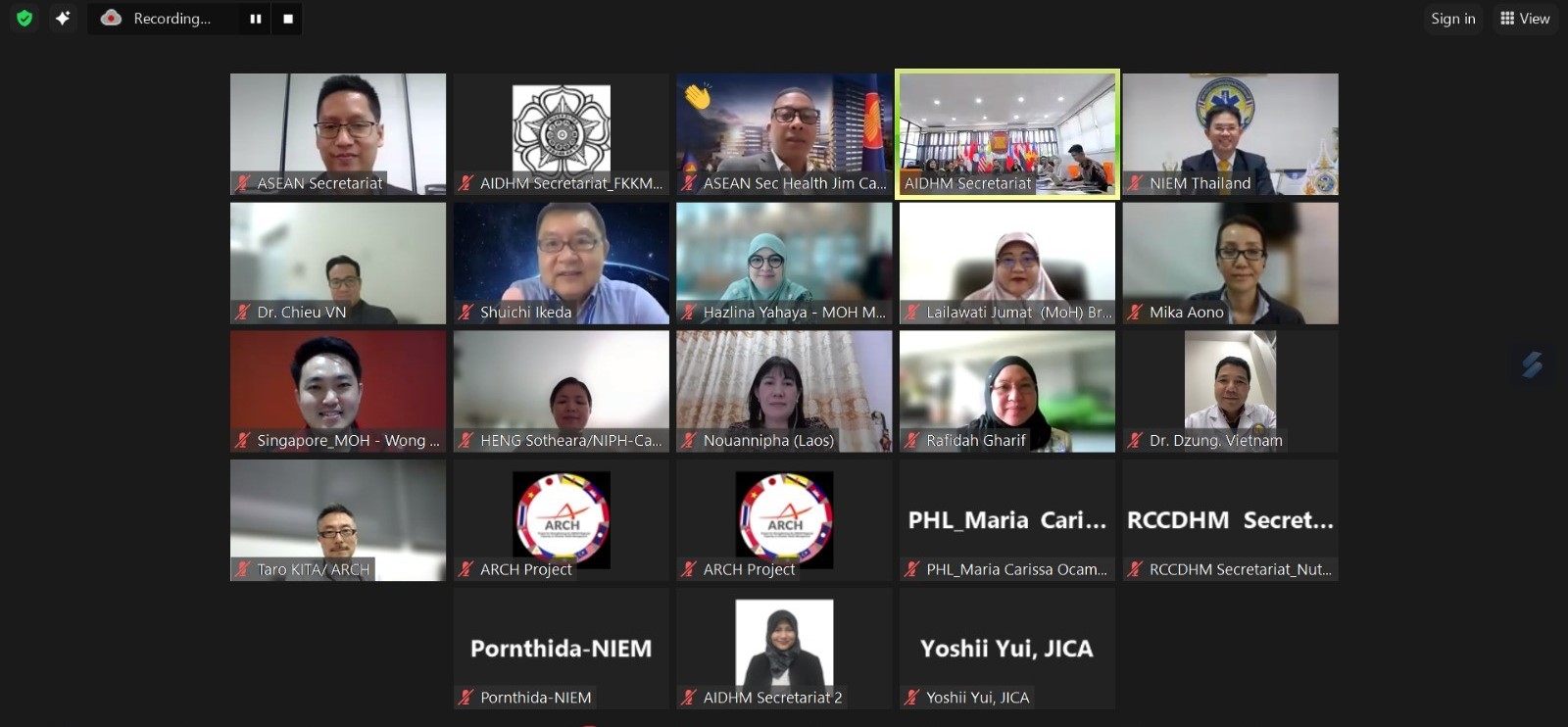 The 4th Meeting of the Steering Committee (SC) for the ASEAN Academic Network on Disaster Health Management (AANDHM) was held on 19 March 2024 via Video Conference, and was facilitated by AIDHM Secretariat. This meeting was attended by designated members of the SC from the ASEAN Member States (AMS), ASEAN Secretariat, Regional Coordination Committee on Disaster Health Management (RCC-DHM) Secretariat, Japan International Cooperation Agency (JICA), the Project for Strengthening ASEAN Regional Capacity in Disaster Health Management (ARCH Project) Team, and the AIDHM Secretariat.