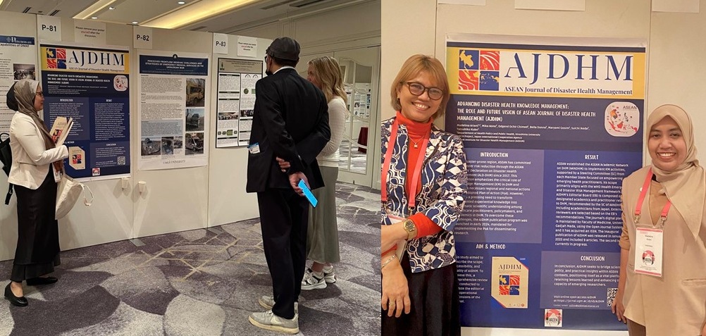Later, during the poster session, the AIDHM team proudly unveiled their vision for the ASEAN Journal of Disaster Health Management (AJDHM), positioning it as a key platform for nurturing emerging voices in disaster research. Their compelling poster titled “Advancing Disaster Health Knowledge Management: The Role and Future Vision of ASEAN Journal of Disaster Health Management (AJDHM)” captured the attention of attendees and ignited meaningful conversations about the journal’s potential to foster innovation and collaboration within the region. The social hour that followed was a vibrant gathering, where participants connected over posters, enjoyed drinks, and engaged in lively discussions that extended well into the evening, further strengthening the sense of community and shared commitment to advancing disaster health research in Southeast Asia.